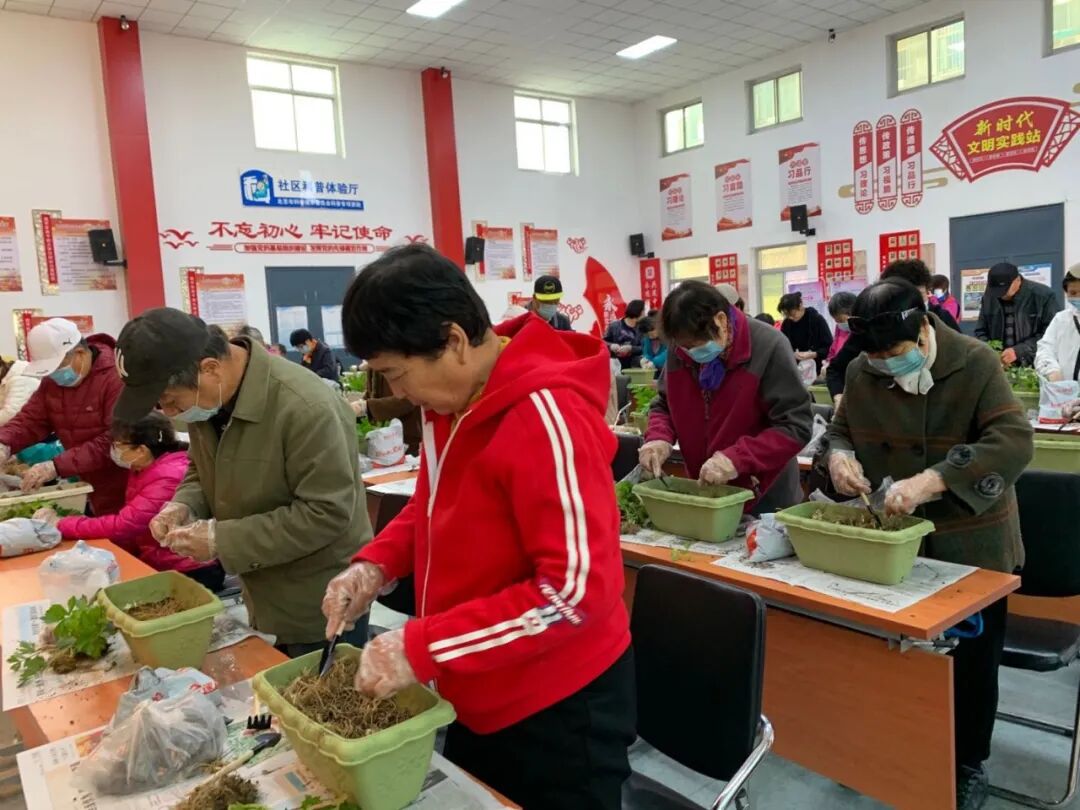 我们请来了育苗基地的专业人员教老人种植蔬菜